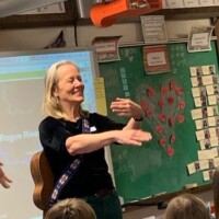 Tish has beta-tested her pioneering program at various grade levels and at a variety of community events. She has presented to retirement centers, libraries, historical societies, and other public gatherings. Also in schools, at youth camps, and while leading hiking trips on the Table Rocks. Her original story and songs receive enthusiastic responses from all ages.